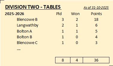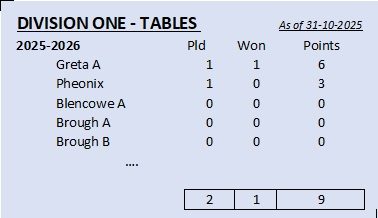 League Tables will appear here for 2025-2026 etc